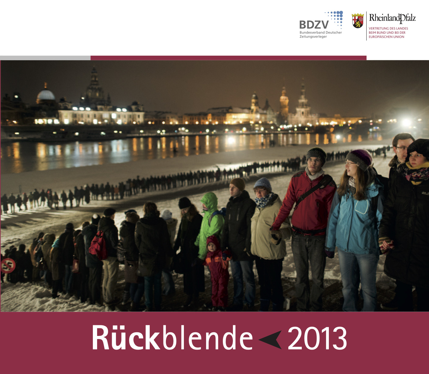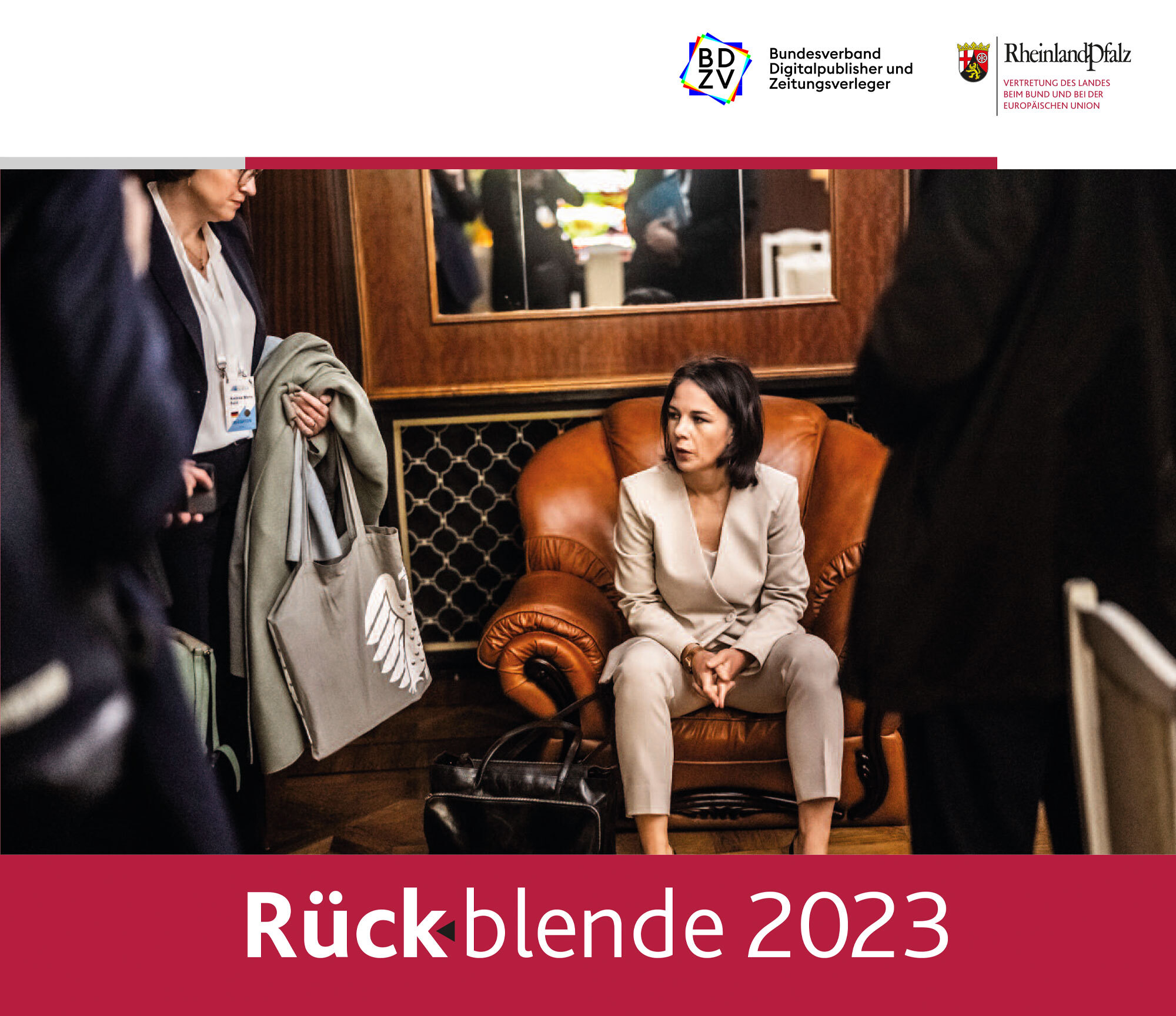 Seit über 40 Jahren veranstaltet die Landesvertretung die Rückblende, den fotografischen und zeichnerischen Rückblick auf das vergangene politische Jahr. Längst hat sie sich zum Wettbewerb um den Deutschen Preis für politische Fotografie gemeinsam mit dem Karikaturenpreis der deutschen Zeitungen entwickelt – unterstützt von Partnern wie dem Bundesverband Digitalpublisher und Zeitungsverleger, der Bundespressekonferenz, der Leica Camera AG, der Zukunftsinitiative Rheinland-Pfalz und vielen mehr.