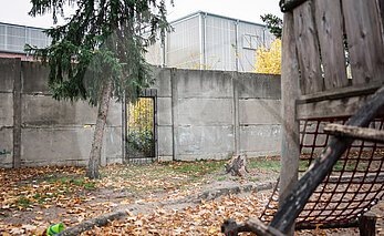 Ein Stück Hinterlandmauer am Spielplatz einer Kita in Wilhelmsruh.