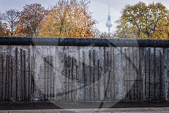 Ein langes Stück ehemaliger Hinterlandmauer entlang der Gleise des Nordbahnhofs.