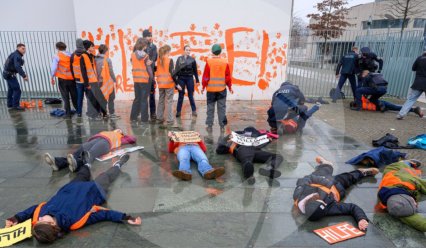 Hilfe! Eure Kinder: Farbattacke von Jugendlichen der Letzten Generation am Bundeskanzleramt - Stefan Müller